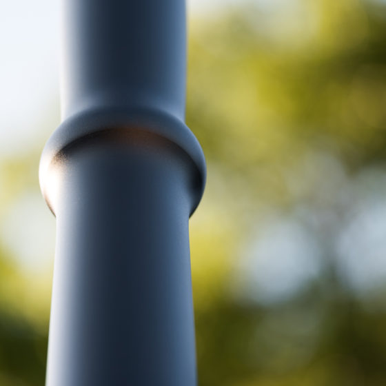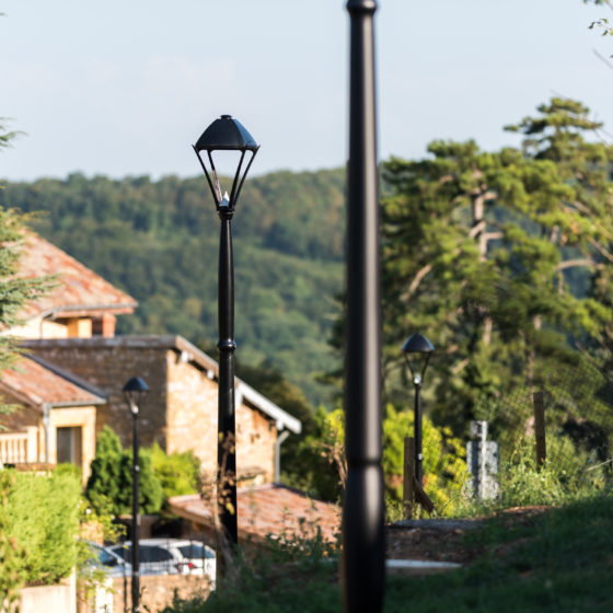 Candella est un mât aluminium fluo-formé inspiré du chandelier, reprenant les codes des mâts fonte d’autrefois.