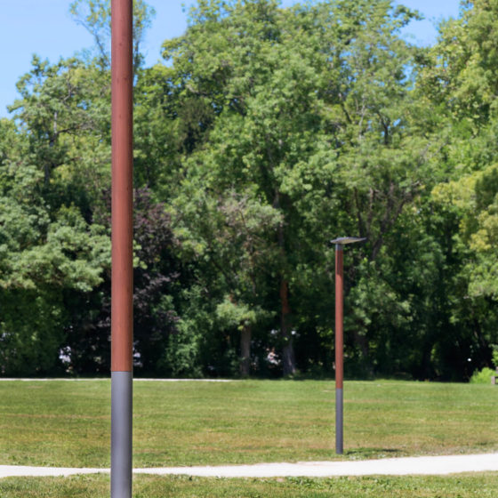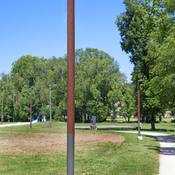 Inari est un mat bois de section tubulaire facile à intégrer de par sa sobriété.