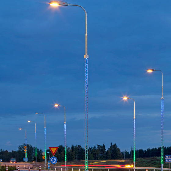 Une mise en lumière du treillis apporte balisage et esthétisme à l’ensemble.