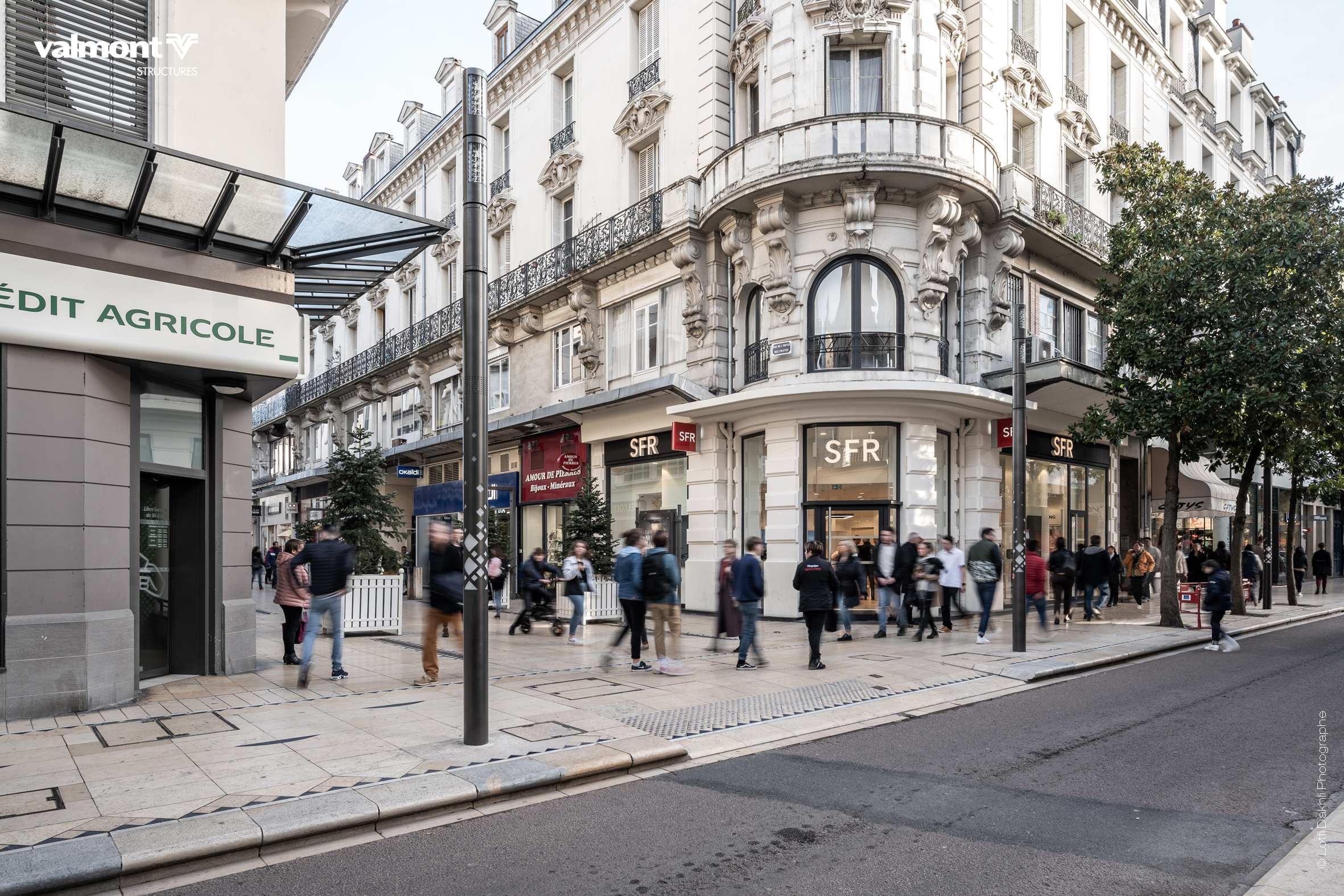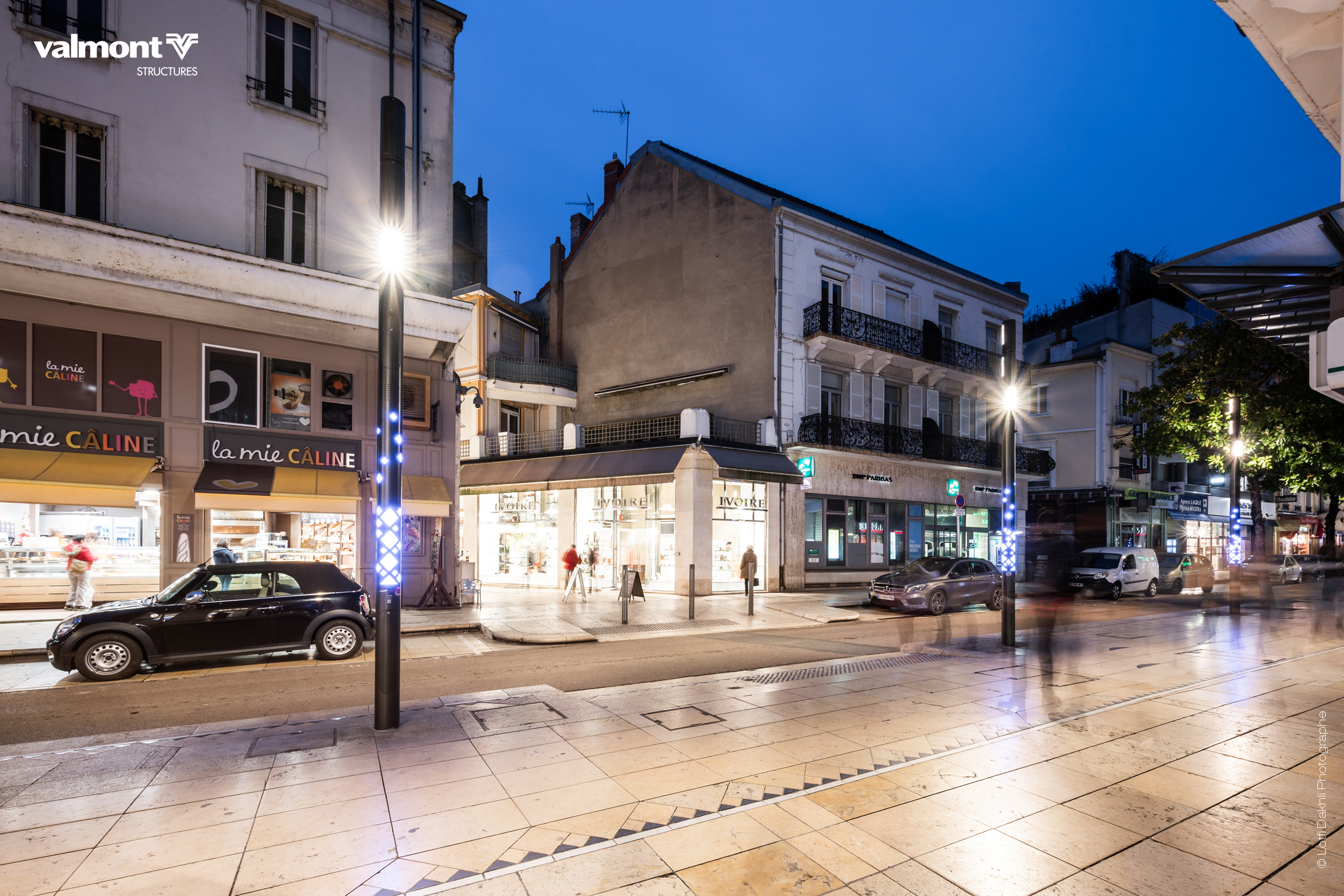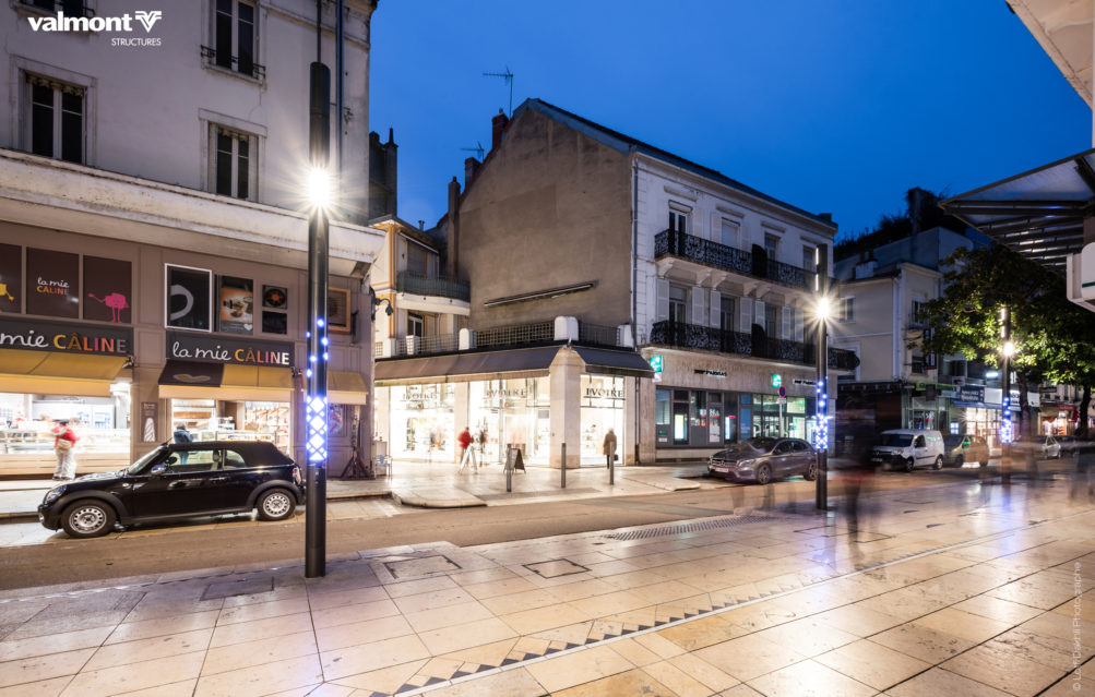 Que ce soit pour du shopping ou une balade en amoureux, la rue Clemenceau est un axe majeur au cœur de Vichy. Cette traversée est désormais jalonnée de Smart Jalousie qui, équipées d’une mise en lumière dynamique et de sonorisation, participent à l’animation du centre-ville lors d’événementiels.