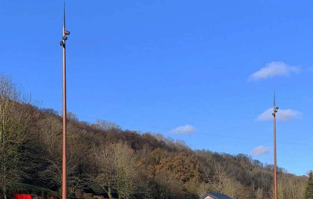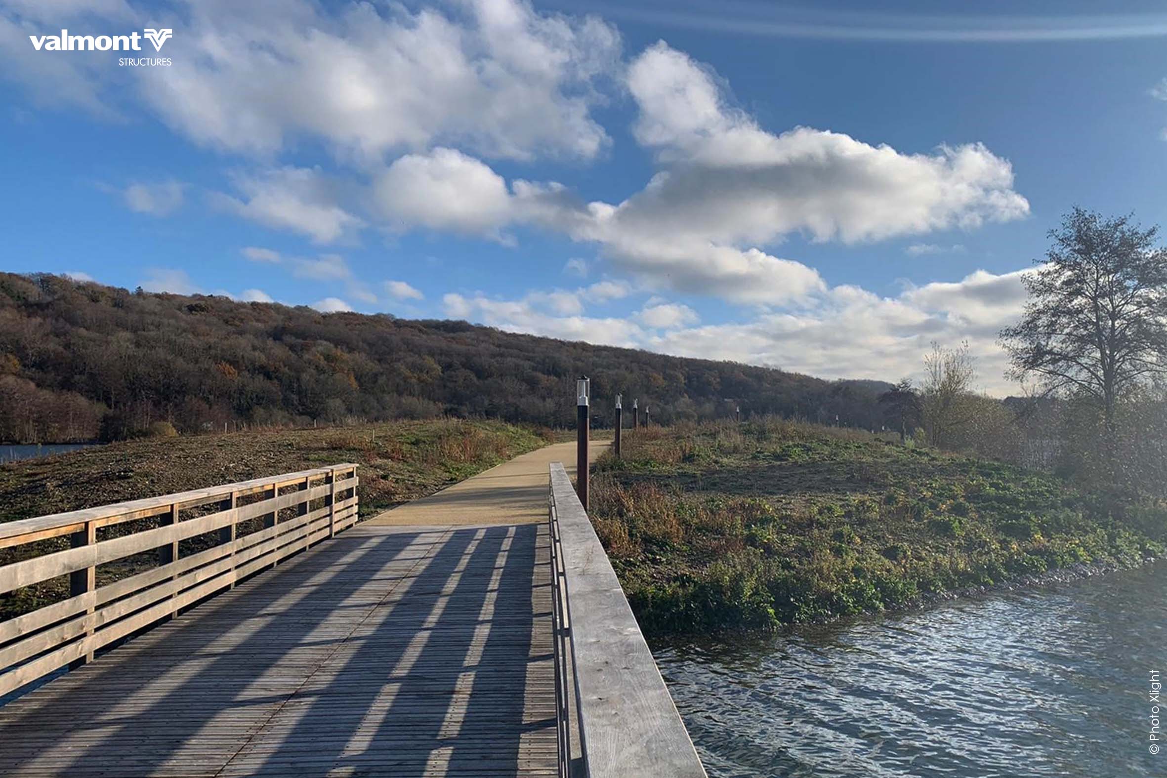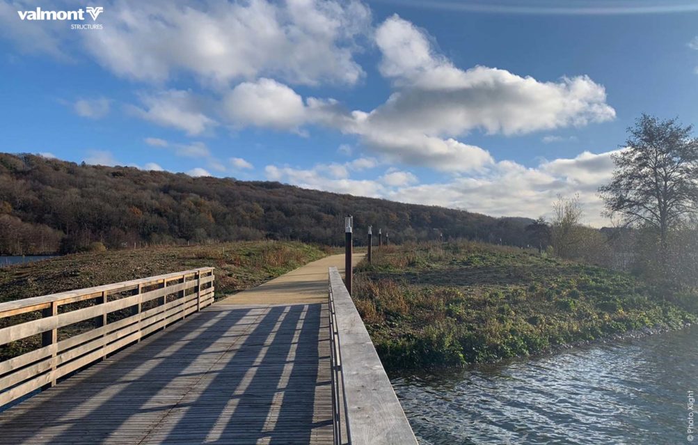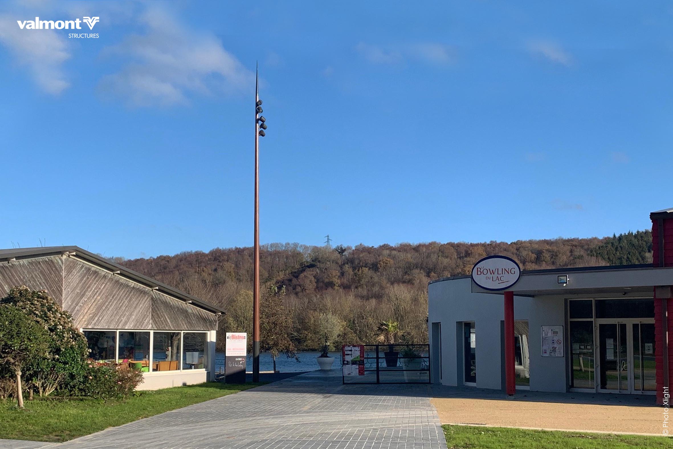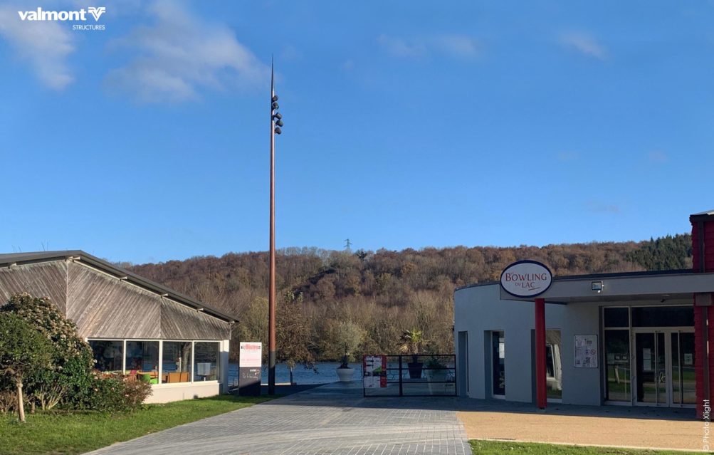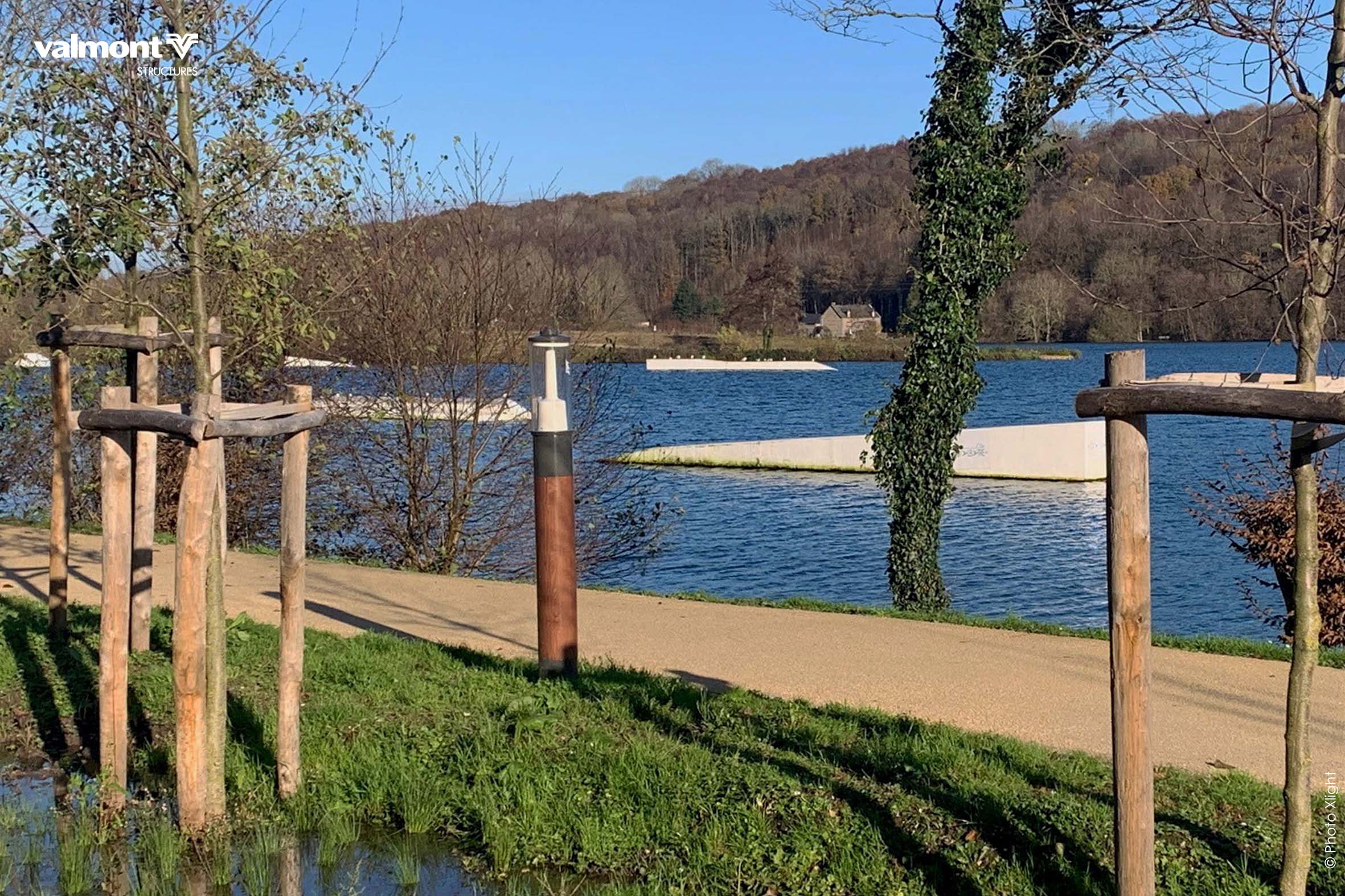 En harmonie avec leur environnement naturel, les mats bois Valmont Tehomet se fondent dans ce paysage de la Vallée de la Durdent. Que ce soit en version XL avec des Pallas support projecteurs pour les zones stratégiques, ou version plus discrète avec des bornes spéciales Kaumpuki pour les zones plus sauvages, chaque support a été pensé selon l’usage des lieux, le tout dans un souci d’intégration optimal.